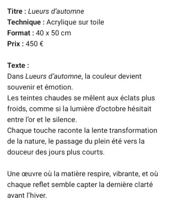 Format 50x50 Acrylique Titre : éphémères d'automne Tarif : 350 €