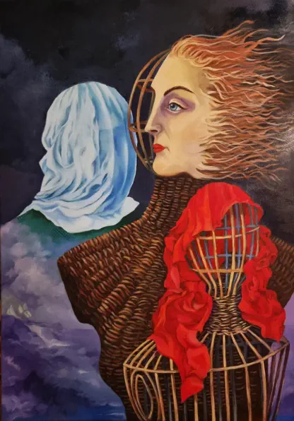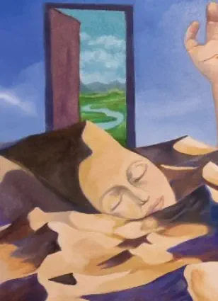 À travers des symboles - portes, escaliers, envols, regards - elle compose des paysages intérieurs où se
