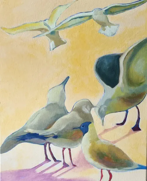 oiseaux se rassemblent, hésitent, puis amorcent un